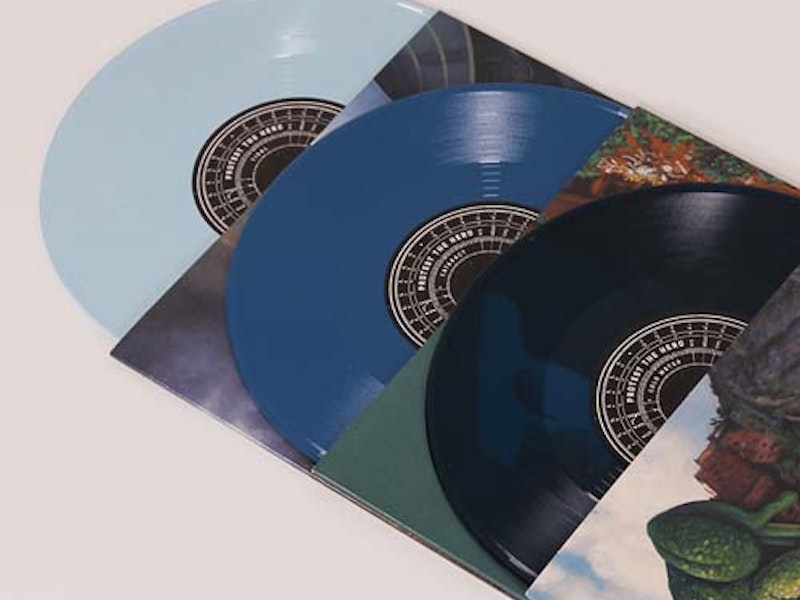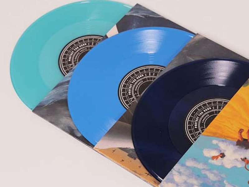 For their 2015 serialized EP release Canadian progressive metal band Protest The Hero approached Precision Record Pressing to create a special 10” box set, to sell direct to fans. The band chose a different translucent or opaque blue color for each of the six vinyl, spanning the full PRP range. Housed in deluxe full-color inner and outer slipcases, each of the six vinyl has a full-color printed inner sleeve.