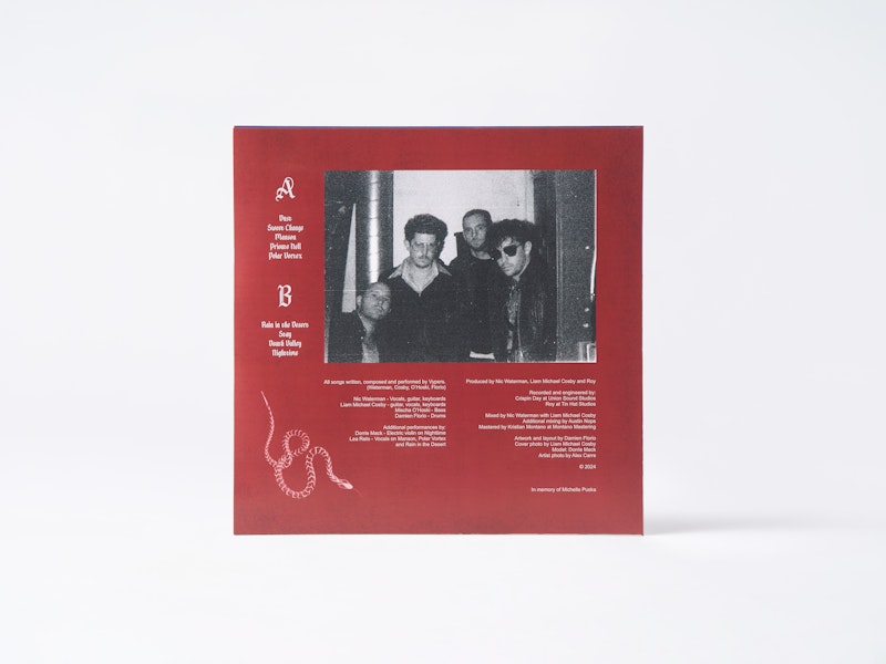 Hailing from Toronto’s underground scene, Vypers’ self-titled debut album is a blend of raw Garage Rock, moody Psych, and snarling Post-Punk. The record captures a balance between gritty distortion and melodic edge, with songs that move between chaotic swells and hypnotic, reverb-laced calm.